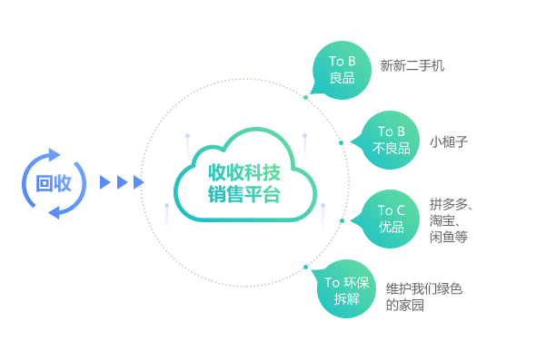 收收科技是行业首创一家具备完善线上分销体系、专注垂直二手手机品类的服务商。基于构建B端的信任体系,保障了回收价格竞争力。